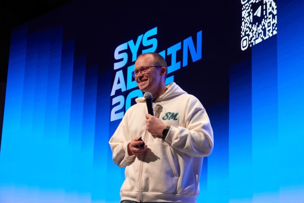 Еще в октябре посетили одну из самых масштабных конференций для системных администраторов и ИТ-менеджеров: встречались с заказчиками на своем стенде, раздавали яркие раскраски и приятные сувениры, пили вкусный кофе с соседнего стенда от Яндекс и выступили с докладом.