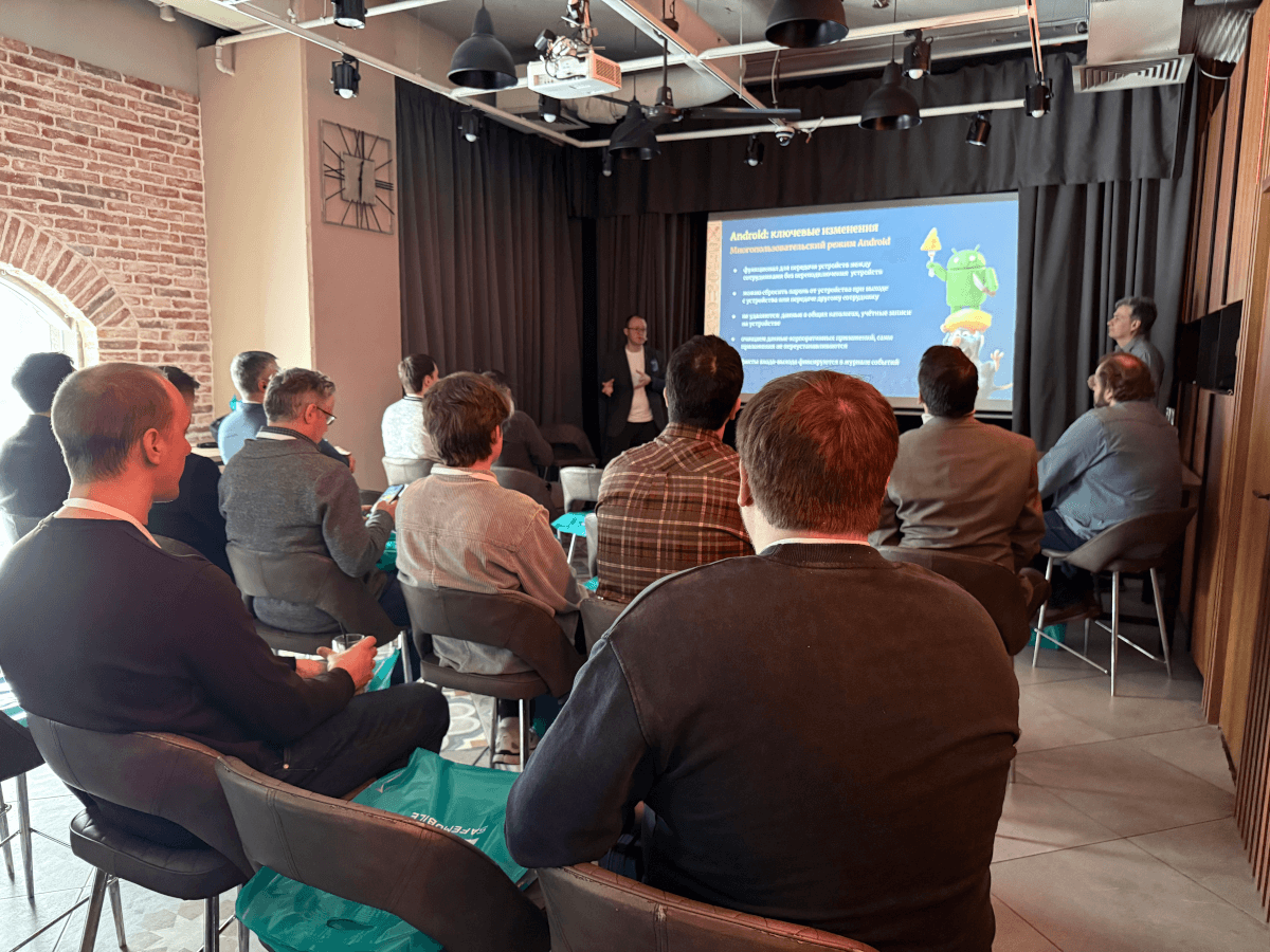 M3 Mobile рассказал про терминалы сбора данных и их интеграцию с SafeMobile. Совместное решение обеспечивает централизованное управление, ускоряет внедрение и снижает затраты на эксплуатацию. Aquarius представил концепцию корпоративной мобильности как управляемой платформы, объединяющей устройства, ОС и SafeMobile в единую среду. Такой подход обеспечивает zero-touch-развёртывание, массовые обновления и применение политик безопасности, быстрый онбординг сотрудников и особенно востребован в проектах с повышенными требованиями регуляторов. INPAS поделился опытом использования SafeMobile в биоэквайринге. Платформа позволяет контролировать состояние платёжных терминалов, управлять настройками и сертификатами и оперативно реагировать на инциденты, помогая соответствовать требованиям безопасности информации.